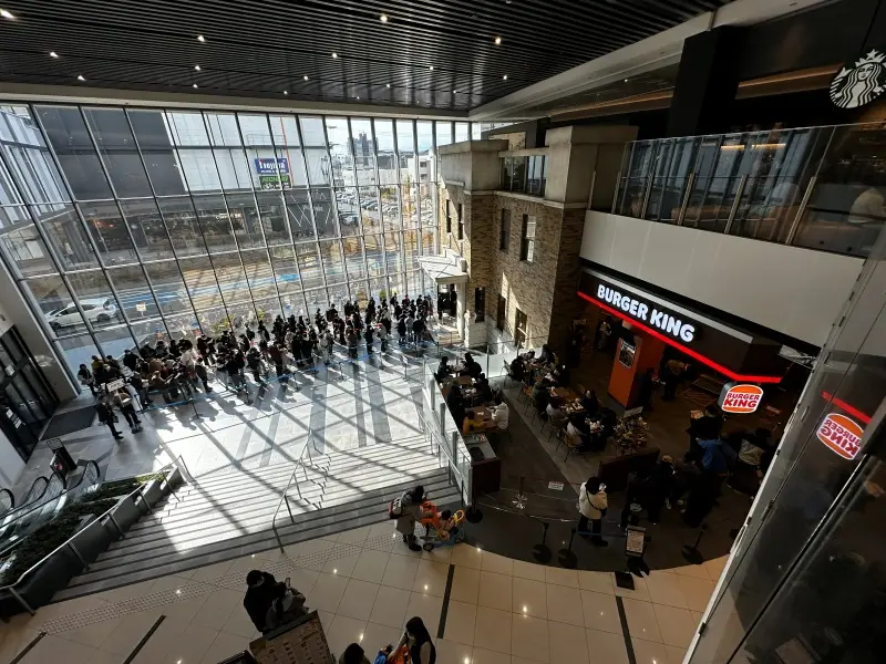 普段の週末でも、専門店エリア入り口は、これくらいは↓並ぶので、12/30はバーガーキング目当ての人でさらに混みそう。