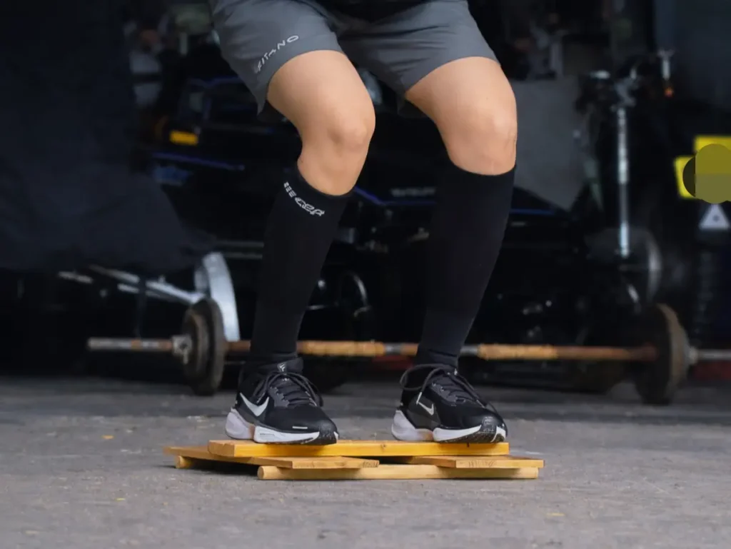 スキージャンプで重要なのは、飛び出す際にいかにジャンプ台に力をいれられるかですが、つま先に力を入れると板が後ろにすべり、高く跳べません。そこで、割合として、つま先が大きかったのが足裏の母指球、小指球、かかとの3点を意識してトレーニングに励み、足裏全体を意識して跳ぶようにしました。