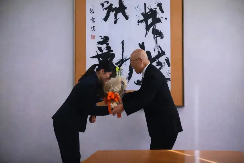 大会後、野明花菜さんは地元・下諏訪町に戻り、町役場で開かれた凱旋会見に出席しました。両親とともに訪れ、盛大な拍手と花束に迎えられるなど、町全体が快挙を祝福しました。