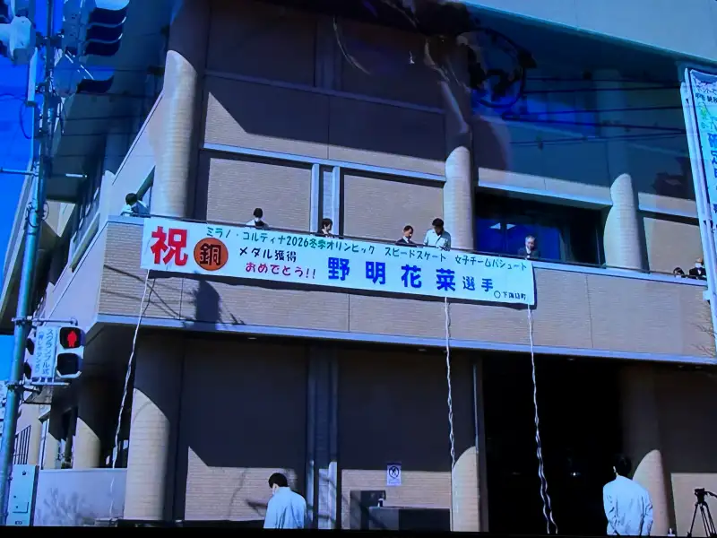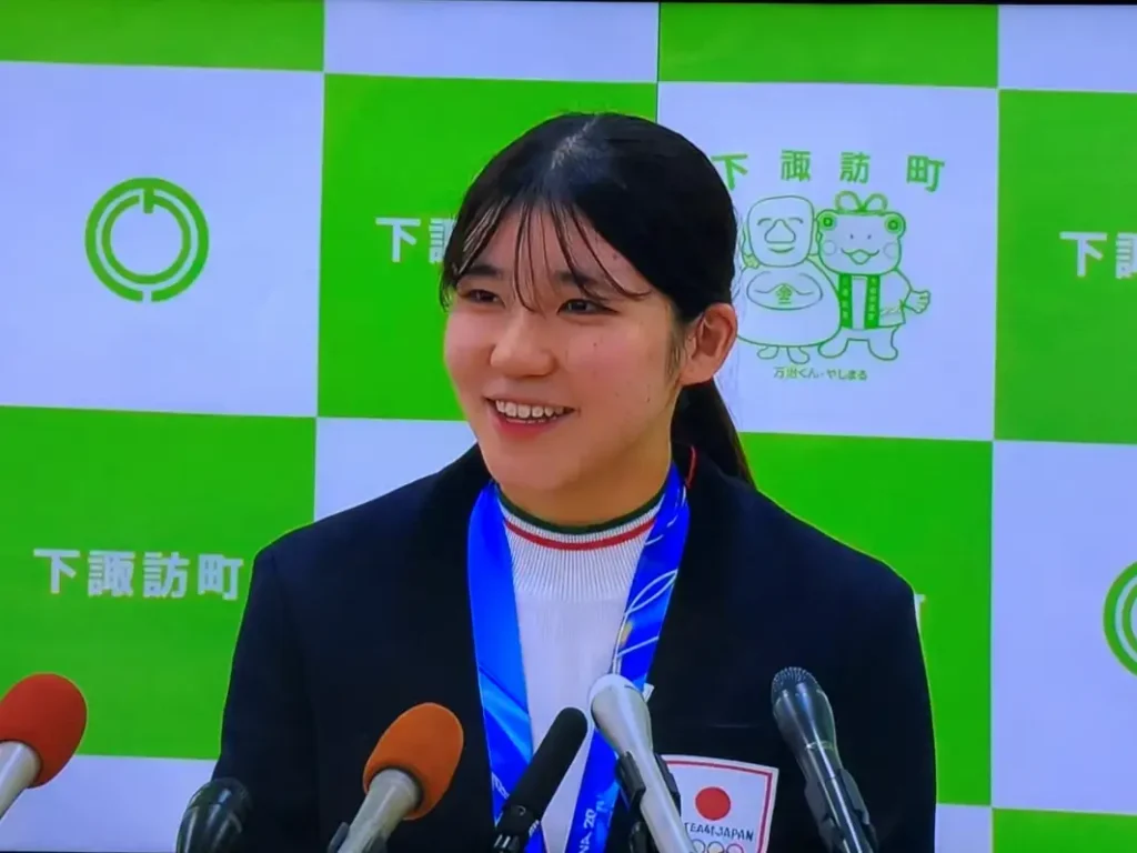 銅メダル獲得直後、地元・長野県下諏訪町では、早くも祝福の横断幕が掲げられました。町全体が快挙を喜び、帰郷を待ちわびる空気に包まれます。大会を終えた野明花菜さんは帰郷後、両親とともに町役場を訪れ、地元で率直な思いを語りました。