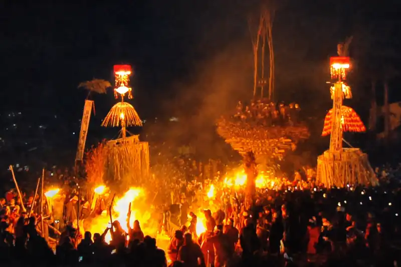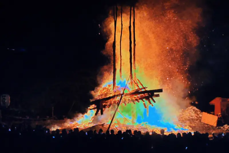 毎年1月に行われるこの祭りは、日本三大火祭りの一つに数えられ、雪深い集落の中で炎が激しく燃え上がる光景が、祭りの印象を強く決定づけています。冬の厳しい寒さの中で行われることから、力強さや迫力が際立ち、他の季節行事とは一線を画します。