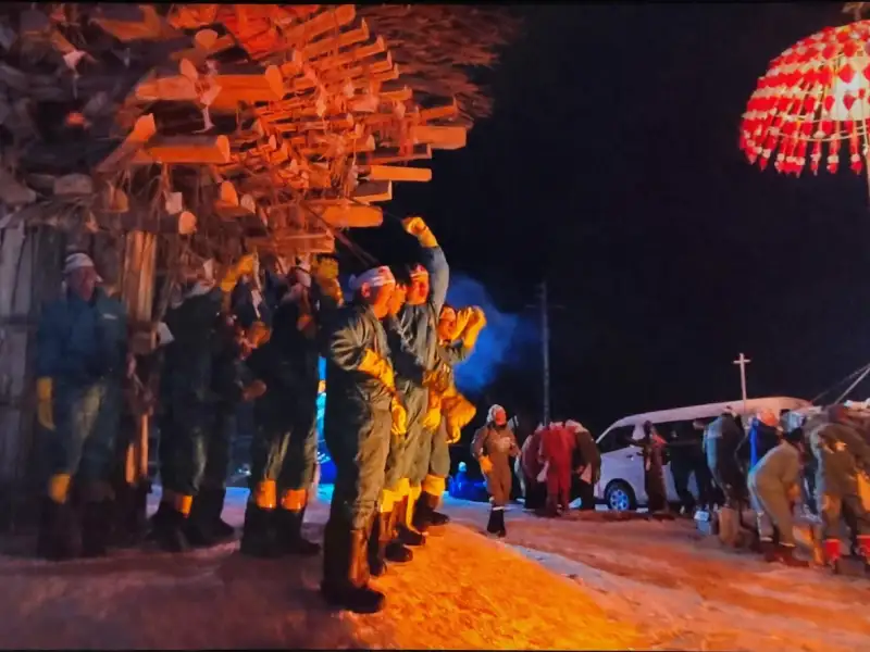 道祖神祭りでは、高さ十数メートルにも及ぶ社殿が組み上げられ、その周囲で激しい火の攻防が繰り広げられます。雪に覆われた集落の中心で炎が立ち上がる様子は、視覚的にも強い衝撃を与えます。寒さの中で行われることで、火の明るさや熱気が一層際立ち、日本三大火祭りと称される理由を体感できる場面となっています。