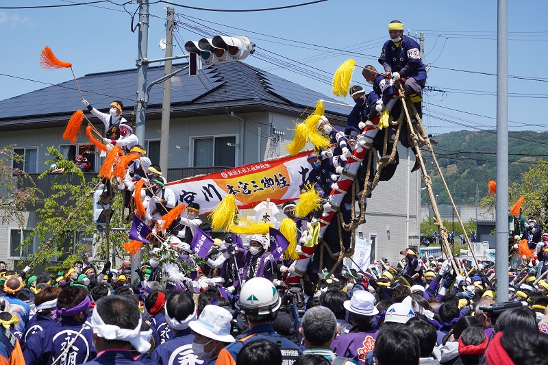また、諏訪大社下社では、半年に一度、8月1日に春宮から秋宮へ、2月1日には秋宮から春宮へ神様を遷す神事、遷座祭が行われます。8月の遷座祭の前夜には宵祭りが行われ、長持ちや神輿などのパレードが華やかに行われるほか、遷座祭当日には、柴舟とよばれる長さ約10メートル、重さ約5トンもの巨大な舟を曳行する「お舟祭り」が開催され、町中が熱気に包まれます。