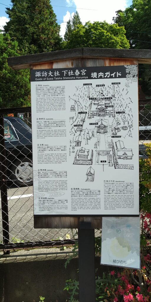 下社で最初に鎮座したのは、春宮と言われています。春宮は秋宮よりも静かで、落ち着いた趣のある宮です。境内には自然と調和した社殿が配置され、春から初夏にかけては特に爽やかな参拝が楽しめます。