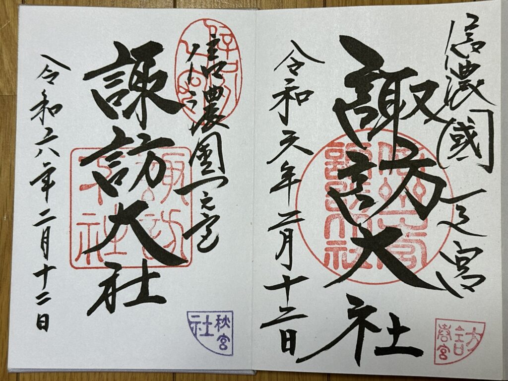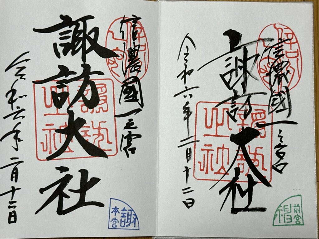 四社分の御朱印が揃うと、巡拝の旅が一つの形として結ばれ、より深く諏訪信仰に触れたことを実感できます。順番に決まりはないため、自分の旅行プランに合わせて自由に巡れる点も、旅の楽しみを広げてくれます。また、御朱印帳を見返すことで旅の記憶が鮮やかによみがえり、次の参拝への期待も高まります。