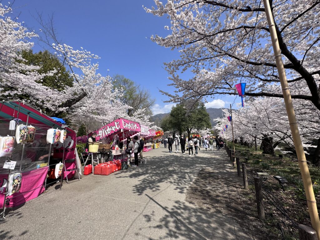 満開の桜を楽しめるだけでなく、期間中は屋台も出店されるため、食べ歩きしながらお祭り気分を満喫できる点も魅力のひとつです。