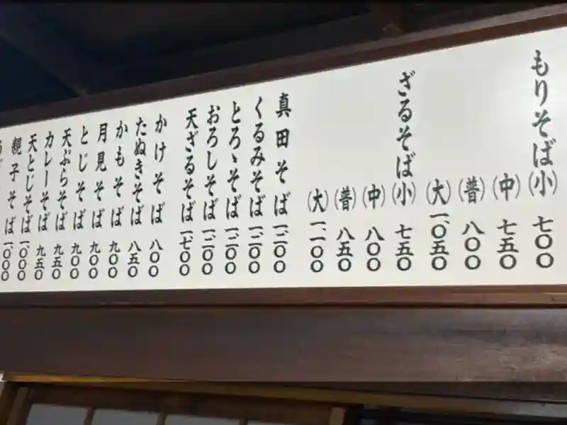 オリジナルメニューの、味噌、なめこ、花かつおが入った器に、だし汁を入れて味噌を溶く味噌だれでいただく「真田そば」や、上田市ご当地グルメくるみだれでいただく「くるみ蕎麦」もあります。