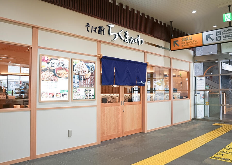そば前 ちくまがわは、上田駅構内の新幹線の改札外(お城口側)に位置し、アクセスが非常に良い店舗です。回転率が高く、短時間で食事を済ませられるのも特徴です。